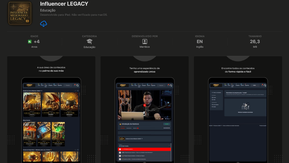 O conteúdo do Influencer Milionário 3.0 é 100% gravado com material pedagógico completo.